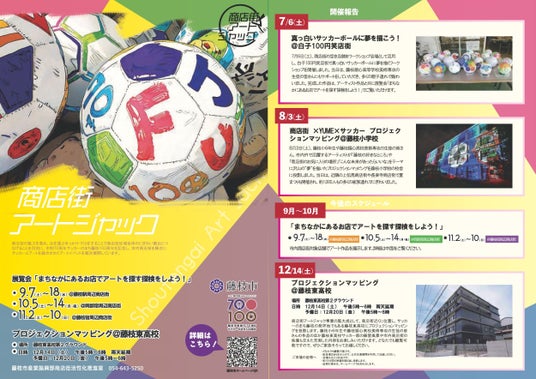 内 容:藤枝順心高校美術専攻の生徒の皆さんや7月の白子100円笑店街ワークショップで子どもたちが制作したサッカーボールアートや、市内外で活躍するアーティストの作品を商店街店舗などに展示します。