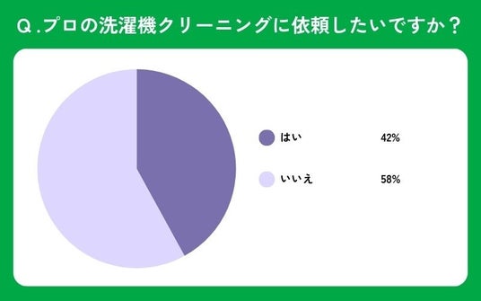 ・プロの洗濯機クリーニングに依頼したことある人は全体の2%で、依頼したいという人は全体の42%