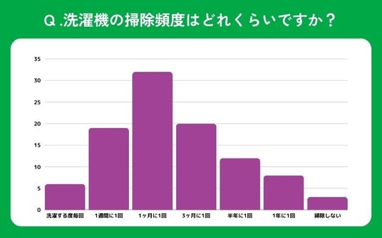 ・洗濯機を「1ヶ月に1回」掃除する人が最も多く、次いで「3ヶ月に1回」という方が多い