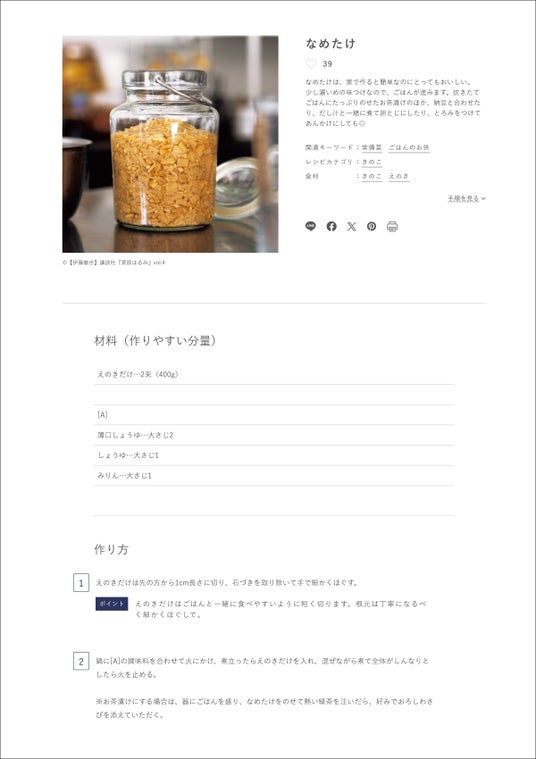 これまでレシピページ内すべての項目が印刷されましたが、レシピのみ印刷されるよう変更しました。