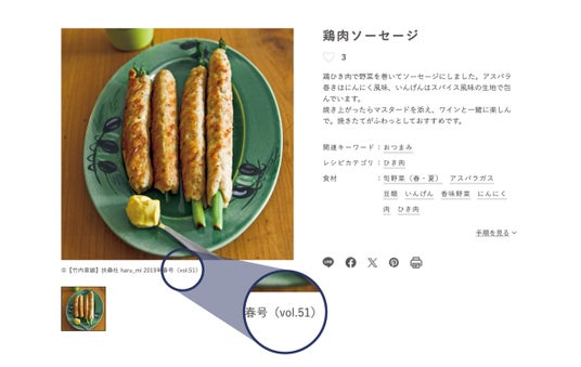 雑誌『haru_mi』掲載レシピについて、年号・季節(例:2019年春号)だけでなく、号数も追加表示しました。過去に公開済みのレシピについては、随時、追加表示してまいります。