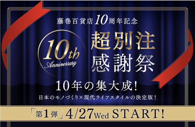 感謝祭第1弾は、4月27日(水)~5月8日(日)開催!創業10周年記念だからこそ実現できた、珠玉の逸品たちが続々登場します!