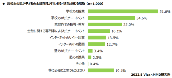 高校生の親:金融教育が行われるべきと感じる場所は「学校での授業」が51.6%