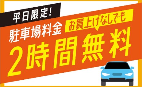 ■平日限定 駐車場料金2時間無料!4月1日(月)以降も継続決定!