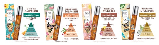今回サンリオキャラクターズとコラボレーションをするのは、「プア ナナラ」の人気の香り3種と新作1種。新しく仲間入りした「ビキニプラウヌ」は、「日焼け肌」にちなんだ今回のコラボレーションで初お披露目となる香りです。海辺の情景からインスピレーションを得た、夏にぴったりの心地よい香りをお楽しみください。