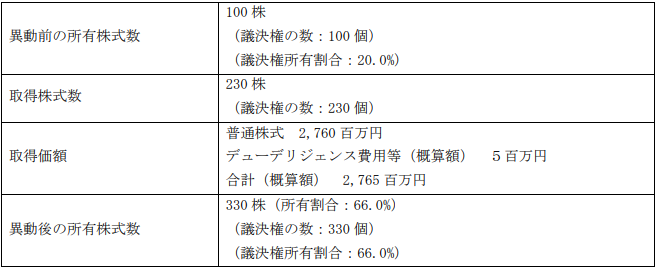 当社は、HRteam社の発行済株式の46%にあたる230株を現金により取得し、HRteam社を子会社化する予定です。
