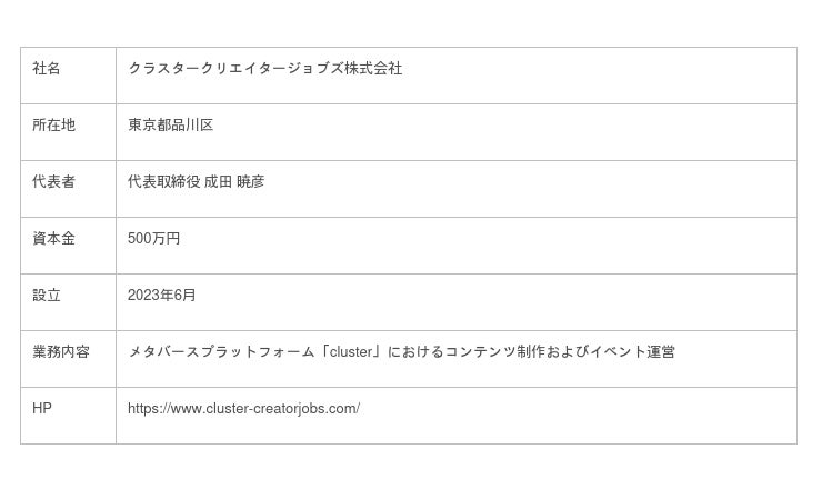 当社は、「人類の創造力を加速する」「バーチャル経済圏の構築」というミッションの実現に向けて、これまで自社の運営するメタバースプラットフォームを活用して、クリエイターの皆さま、および法人のお客様の実現したいメタバース空間の具現化をして参りました。総額53億円の資金調達を実施し、今後は海外展開・教育分野への進出、そしてクリエイターの皆さまと法人のお客様にさらに便利にclusterをご活用いただけるサービスの充実化を計画しておりますが、まずは「クリエイターの皆さまと法人のお客様にclusterをご活用いただける新サービス」を実施するため、子会社を設立することにいたしました。