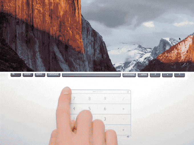 切り替えはとっても簡単。トラックバッドの四隅からスワイプするだけ。