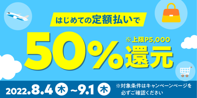 株式会社メルペイは、同社が運営するフリマアプリ「メルカリ」のスマホ決済サービス「メルペイ」において、2022年8月4日(木)より、夏シーズンの消費活性化施策として「メルペイスマート払い」のキャンペーン「はじめての定額払いで50%還元キャンペーン」を開始いたします。