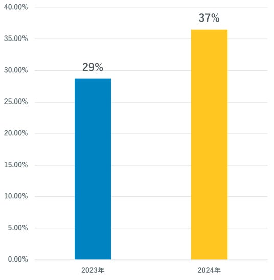 ▼業務委託のメンバーが在籍しているのは37%。2023年の29%を上回る