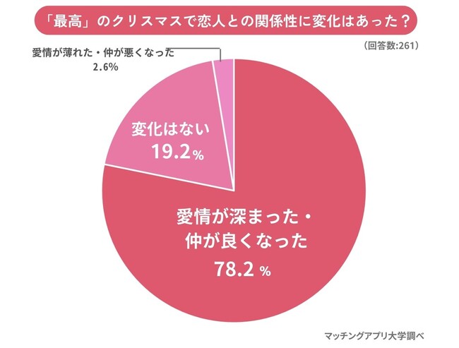 今回アンケートに回答してくれた男女261人に、最高のクリスマスを過ごした後の愛情の変化について聞いてみました。
