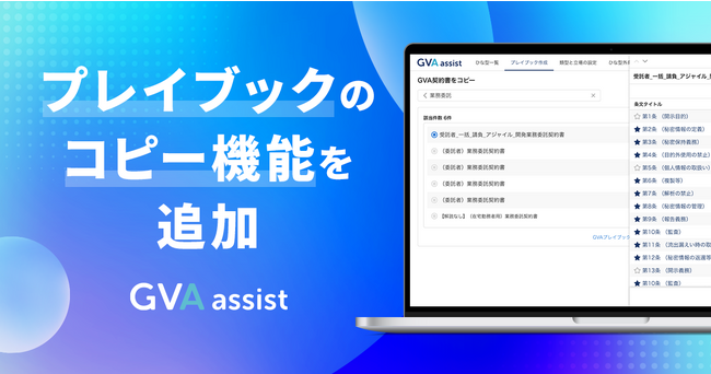 GVA TECH株式会社は、AI契約書レビュー支援クラウド「GVA assist」について、お客様からご要望が多かった「プレイブックコピー」機能をリリースしたことをお知らせします。
