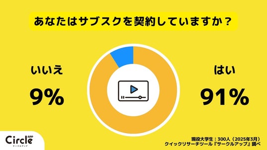 ■現役大学生の91%がサブスクを1つ以上契約していると回答