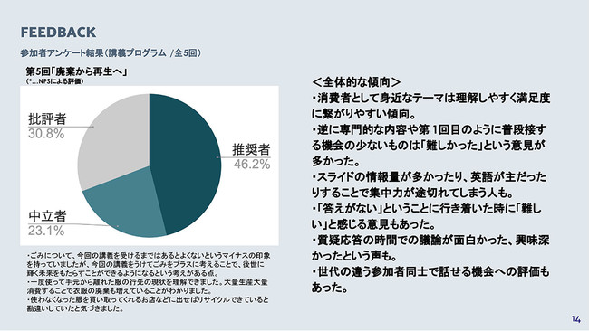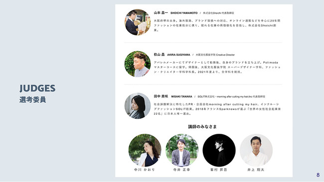 廃棄衣料の再活用をおこなう(株)shoichi(東京/大阪)が主催した、ファッション産業の仕組みや、ファッションそのものの持つ価値について再考し、これからの時代にどのような変化を起こせるのかを考え、実践していくコンテスト型プログラム「Rethink fashion program」(HP: https://shoichi.co.jp/rethink-fashion-program/ )の終了レポートを発表します。本プログラムは大阪文化服装学院(大阪 学校法人ミクニ学園 理事長・校長:岩崎一哉)との協働プログラムです。
