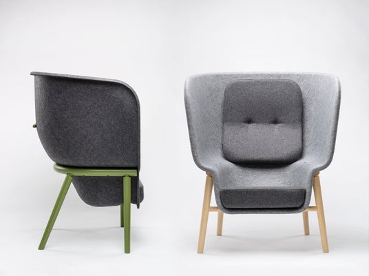 会場ではシンプルかつ持続可能なデザインの「Pod PET Felt Privacy Chair」に実際に座っていただき、柔らかさや丈夫さ、心地よさを体験してみてください。