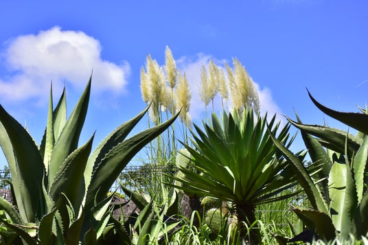 園内のサボテンや多肉植物とパンパスグラスとの競演