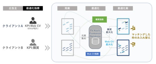 「TV AaaS Formation Optimizer」を活用することで、AIが両社のKPIを最適化するために入れ替えるべき放映枠を判断し、実際に放映枠の組み替えを実施。