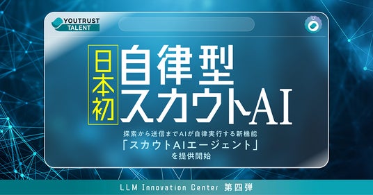 日本のビジネスを動かすプロフェッショナルネットワーク「YOUTRUST」を開発・運営する株式会社YOUTRUST(本社:東京都渋谷区、代表取締役社長:岩崎由夏)は、ネットワークリクルーティングサービス「YOUTRUST TALENT」において、候補者探索からマッチ度判定、スカウトメッセージ生成、送信までをAIが自律的に実行する日本初(※)の新機能「スカウトAIエージェント」を2026年4月より提供開始いたします。