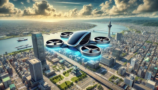 空飛ぶクルマが九州地方上空を飛行する未来のイメージ