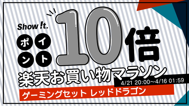 楽天市場「Show !t」はポイント10倍プレゼントを実施し、4月月21日20:00~4月16日01:59まで開催される、楽天お買い物マラソンに参加します。全商品ポイント10倍になるこの機会に、マウスやマウスパッド、ヘッドセット、キーボードなど、スターターセットを通常価格から500円オフでお得に一式揃えられるので、おすすめです。