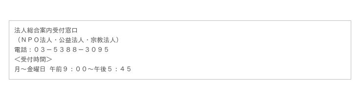生活文化局都民生活部管理法人課 法人総合案内受付窓口(NPO法人・公益法人・宗教法人)