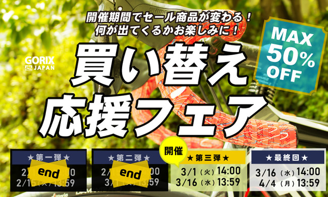 GORIXの公式オンラインストアで、3/1(火)14:00~~3/16(水)13:59まで第3弾の買い替え応援セールを開催します。