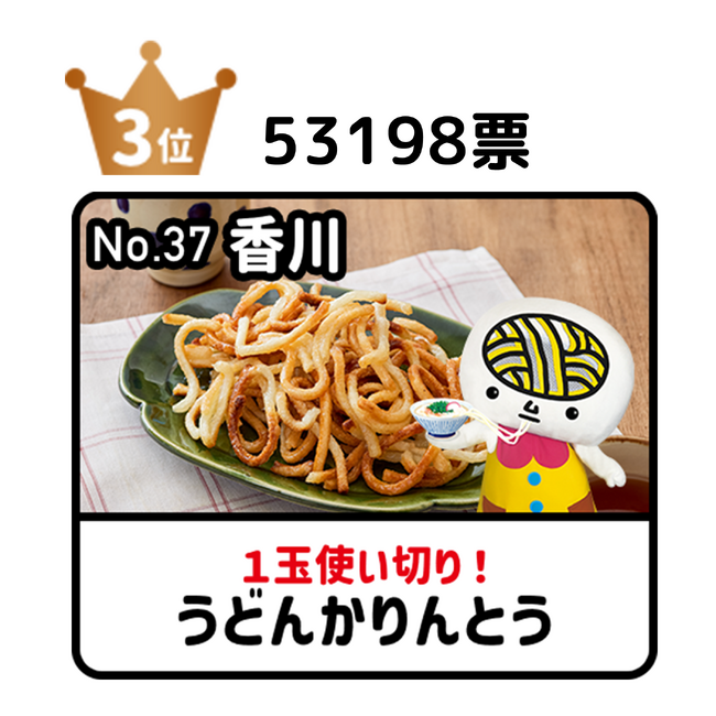 グランプリグルメは全252,634票のうち72,022票を獲得。2位は佐賀「玉ねぎの海苔ナムル」、3位は香川「うどんかりんとう」