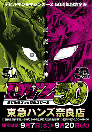 世界的な巨匠であり鬼才・永井豪先生が描き、現在に至るまで力強く輝き続ける不朽の傑作『デビルマン』と『マジンガーZ』。両作品の誕生から半世紀を経た2022年、新たな歴史に鋼鉄の楔を打つ記念碑的な特別企画『DVZ50』が、東急ハンズ奈良店で9月7日(水)よりいよいよ開幕!