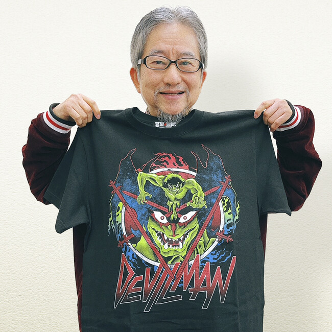 デビルマンとマジンガーZ、不動明と兜甲児が対峙する歴史的デザイン。記念すべき「DVZ50」公式Tシャツ。