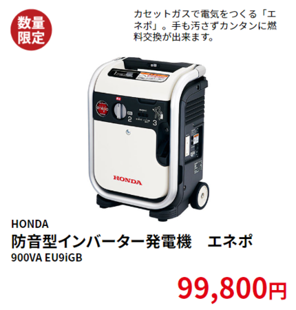商品名:HONDA 防音型インバーター発電機 エネポ 900VA EU9iGB