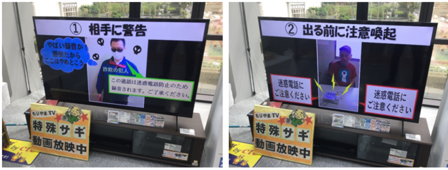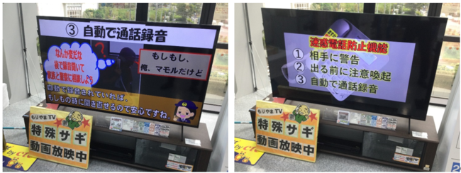 ■ 特殊詐欺防止を啓発する動画、防犯コーナーで常時放映しています。(2022年9月19日まで放映)