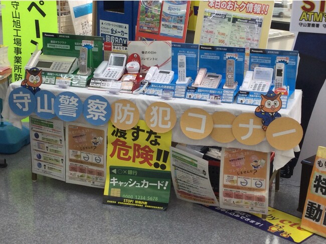 株式会社ヤマダホールディングス(本社:群馬県高崎市、代表取締役会長 兼 社長 CEO:山田 昇、以下、ヤマダホールディングス)は、家電住まいる館 YAMADA 守山店((株)ヤマダデンキ)の店内ブースにおいて、愛知県守山警察署が企画する迷惑電話防止機能付き電話機を使った「特殊詐欺対策」の啓発活動に賛同し、特設ブースの提供とお客様へのお声かけの協力を行いました。