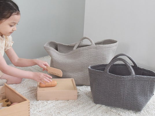 Lサイズはこまごました小物やこどものおもちゃ、かさばるブランケットもすっぽり。