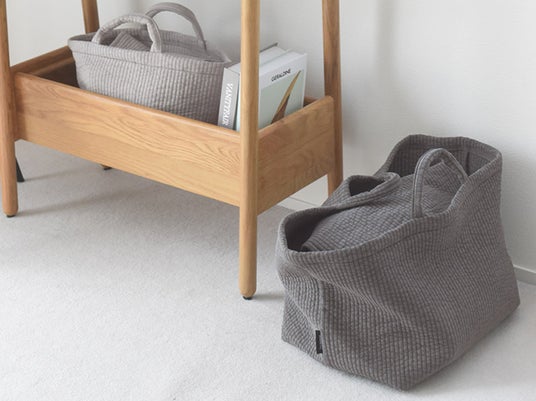 ボンモマンの大ヒットシリーズ「目隠しできる 帆布素材 収納トート」の形を踏襲し、新たに採用したのは韓国発のキルティング生地「ヌビ」風の素材。