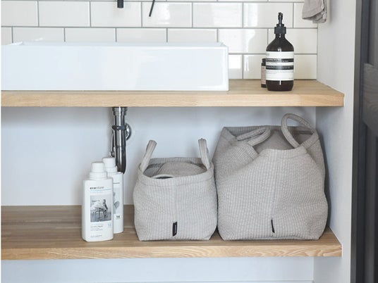 いちいちきちんと収納するのではなく、“ざっくり”と片付けられて、インテリアにも馴染んでくれる収納アイテムがあれば・・・。そんな思いから生まれた「目隠しできる 収納トート」。