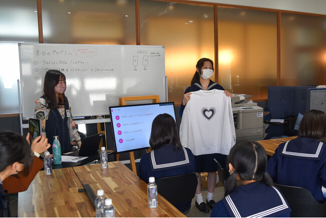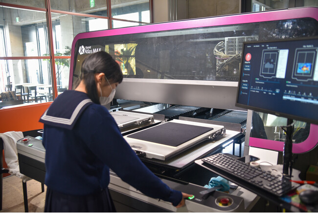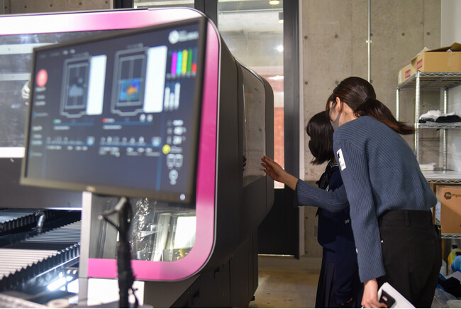 生徒たちからは「プリンターは想像以上の大きさで迫力があった!」「自分のグラフィックが服に落とし込まれて感激した」などの声があがりました。
