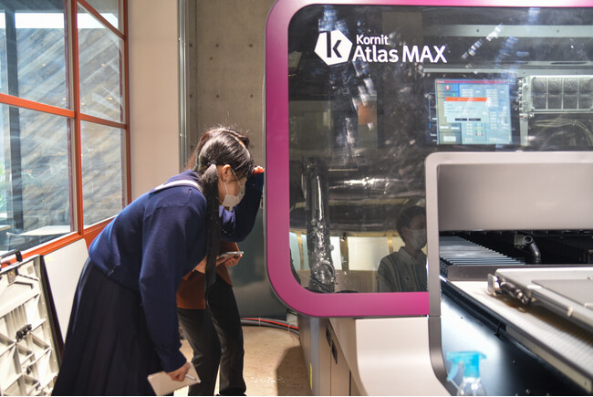 普段見る機会のないプリンターの大きさや、印刷スピード、発色のよさに驚く生徒たち。プリンターから印刷される様子を興味津々で覗き込んでいました。