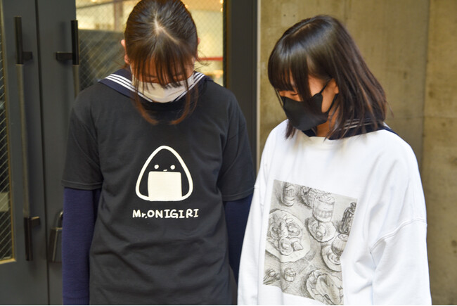 イベントは、完成したTシャツを手にデザインに込めた想いをそれぞれが発表して幕を閉じました。 モノクロのハートをプリントした生徒は「多様性というテーマを聞いたとき、最初はレインボーカラーでデザインすることを思いついた。だけど、多様性=レインボーと想起すること自体が固定観念に縛られてしまっているのかもと考え、あえてモノクロでデザインすることで多様性を表現しました」と話しました。 また、おにぎりのデザインをプリントした生徒は「外から見たら同じものに見えるけど、中に入っている具はさまざまであることが多様性を表現する身近なモチーフとしてぴったりだと思った」と発表しました。 生徒一人ひとりが「多様性」というテーマを受け止め、自分なりに解釈してグラフィックに落とし込んでいる様子でした。