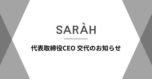 株式会社SARAH(本社:東京都中央区、以下「当社」)は、代表取締役CEOの交代を行いましたので、お知らせいたします。