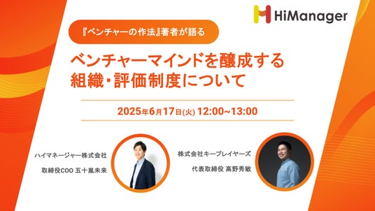 株式会社キュービック(本社:東京都新宿区、代表取締役社長:世一英仁、以下「キュービック」)のグループ会社、ハイマネージャー株式会社(本社:東京都渋谷区、代表取締役CEO:森謙吾、以下「ハイマネージャー」)は、2025年6月17日(火)に経営者・人事担当者向けオンラインセミナー【『ベンチャーの作法』著者と語る~ベンチャーマインドを醸成する組織・評価制度について~】を開催します。本セミナーでは、ベストセラー『ベンチャーの作法』の著者である株式会社キープレイヤーズ・代表取締役・高野秀敏氏をゲストに迎え、組織づくりや人事評価制度の課題解決策を深掘りします。AI技術の進化など目まぐるしく環境が変化する現代において、企業成長を加速させる実践的なヒントを提供します。