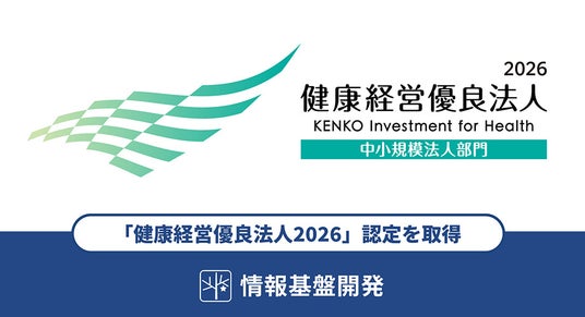 株式会社情報基盤開発(本社:東京都文京区、代表取締役:鎌田長明)は2026年3月9日、日本健康会議が認定する「健康経営優良法人2026(中小規模法人部門)」を取得。同3月30日に認定証が届きました。