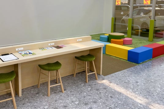 小さなお子様をお連れのお客様でも安心してご利用いただけるよう、絵本やおもちゃ等をご用意したキッズスペースを設けております。コンセント付きのカウンター席で、お子様を見守りながらご商談いただくことが可能です。