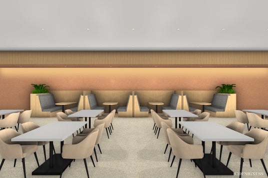 お客様にゆったりとお過ごしいただけるよう、空港のラウンジのような落ち着いた雰囲気を持たせ、高級感のあるデザインに仕上げています。カフェは様々な種類のお飲み物をご用意しており、商談スペースやラウンジスペースへ自由にお持ち込みいただけます。