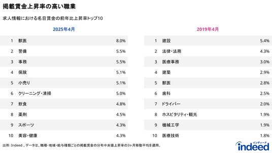 広範囲の職種で前年比4%超の伸びを示す一方、2025年に入り上昇率はやや鈍化。