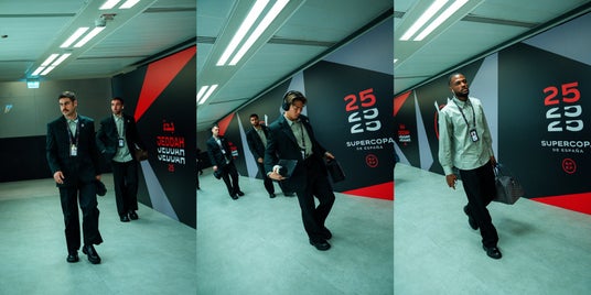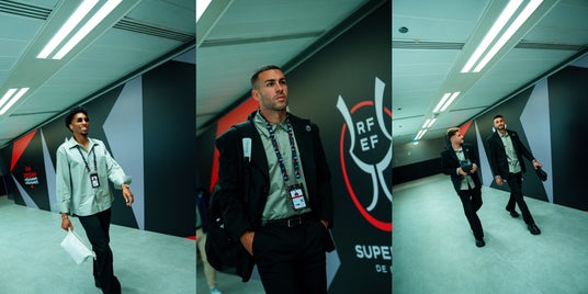 CAMPERLABとRCD Mallorcaのパートナーシップは、2025年1月9日サウジアラビアで開催されたSpanish Super Cup(スペイン・スーパーカップ)にてスタイリッシュに幕を開けました。Real Madrid(レアル・マドリード)戦の前に、チームメンバーがCAMPERLABを身にまとい登場。黒のブレザーとパンツ、そしてリラックスフィットのシャツを着用しました。チームのモノグラム・ロゴをフィーチャーしたこのモダンでリラックスしたルックは、ブランドの美学を完璧に体現しています。