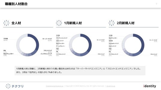 1月新規人材と同様に、2月新規人材のうち高い割合を占めたのは「サーバーサイドエンジニア」と「フロントエンドエンジニア」でした。