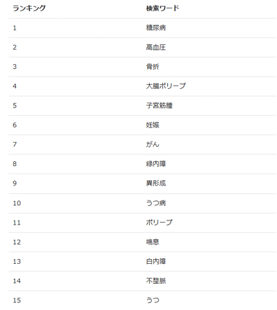 こちらの病名ランキングにつきまして、保険会社ユーザー様には毎月上位1,500個までお渡しさせて頂いておりますが、さらに精度を上げたデータにすべく改善を重ねております。
