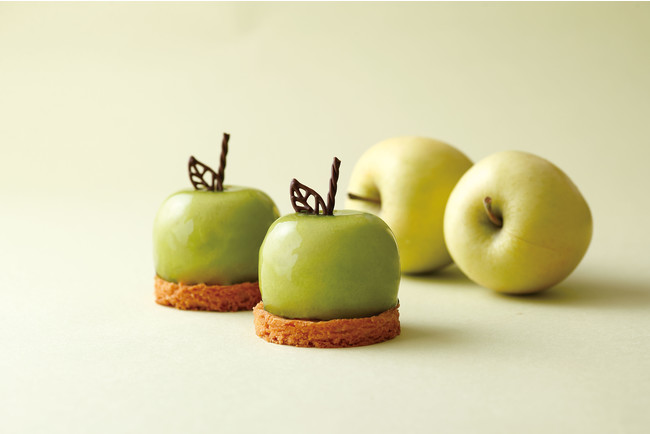爽やかなグリーンのグラサージュの中にはショコラと青リンゴのムース入り。