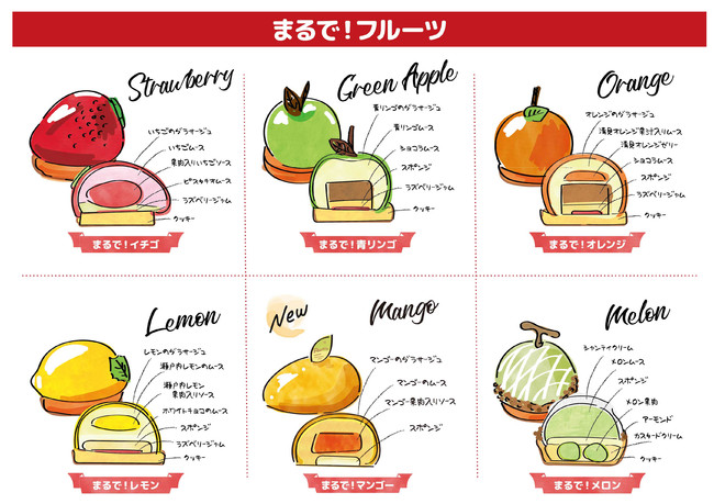 「パティスリージロー」では、日本テレビ「news every.」やフジテレビ「めざましテレビ」でも注目のスイーツとして紹介され話題となったケーキ“まるでフルーツ”シリーズを販売。季節限定で入れ替わる本物のフルーツそっくりのケーキたちが特別に勢揃いします。中でも注目は、今夏初めて仲間入りする「まるで!マンゴー」。つやつやのマンゴージュレをひと匙すくうと、マンゴームースと果汁が溢れだす暑い季節にぴったりの新作です。