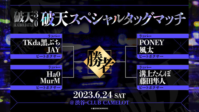 また、1回戦全8試合のバトルは、破天MICROPHONE公式YouTubeチャンネルにて無料生配信いたします。